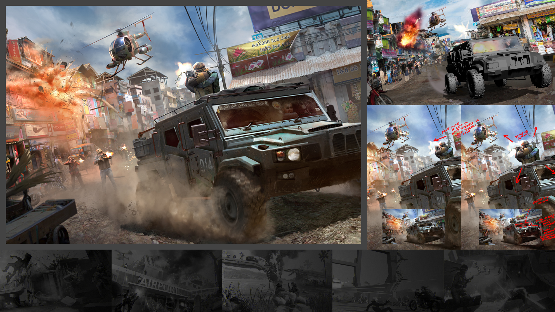 The vision for Intensity started with inspiration from various sources, concept art, and photo bashing to convey the overall feel and tone. These pieces also became the touchstone for marketing key art and branding.